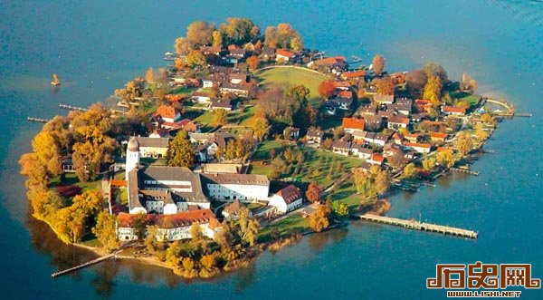 100年前,基姆湖男性渔民向当地政府提出居住申请,获得了修道院的许可,可见当时修女们的开放心态。现在,全岛约有50户房屋和300名居民,而且有男有女。女人岛的村落似乎更得游人欢心,还吸引了许多艺术家、诗人和画家移居到这里。全岛只须用约20分钟的步行时间便可游毕全程。著名的旅馆“HotelLinde”更为不少艺术家及诗人爱居住的地方。