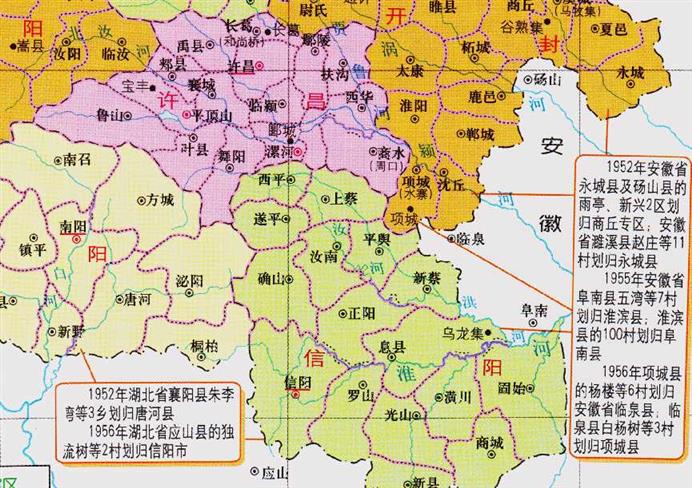 历经三次大规模的区划调整以后,河南省与安徽省的区划轮廓,基本上稳定下来。在五六十年代,河南省的200多个村庄,陆续划入了安徽省境内。作为回应,安徽省的140多个村庄,陆续划入了河南省管理。其实,在建国初期,各省之间的区划变迁很普遍。