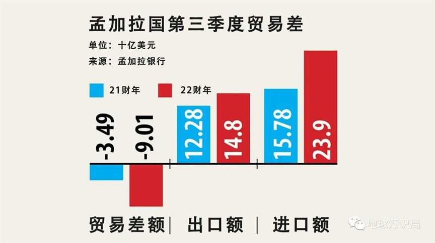 从最近数据看,孟加拉国经济形势也非常不妙。受高企的能源价格冲击,孟加拉国外贸逆差也急速扩大。