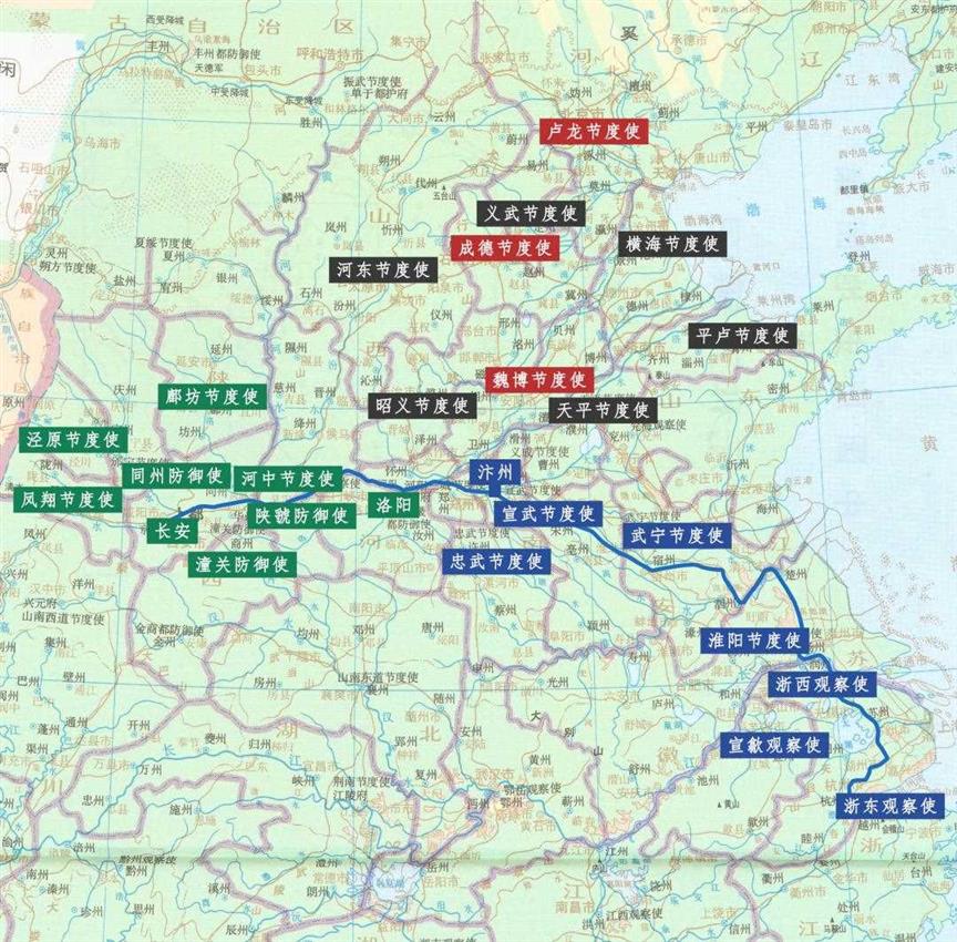 华北地区众多节度使,大都时叛时服,其中以卢龙、成德、魏博反叛最为激烈