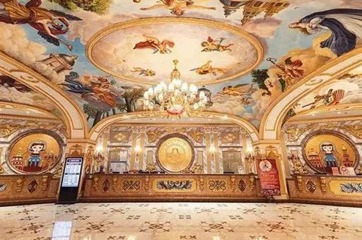 进入满洲里,老远就能望见巨型套娃酒店,据说是七星级的,是世界上最大的套娃单体建筑,还入选了吉尼斯世界纪录。走进酒店,一进门,满眼的金碧辉煌:大理石墙面、柱子、屋顶、通道的装饰主色都是金色;墙上还挂有各种仿制的世界名画,像是走进了欧洲的贵族宫殿。最有特色的是店内遍布各个角落的套娃元素,从墙面装饰、吊灯、楼梯,甚至是垃圾桶,全都有套娃。