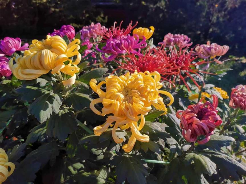 “又是秋天,妹妹推我去北海看了菊花。 黄色的花淡雅、白色的花高洁、紫红色的花热烈而深沉,泼泼洒洒,秋风中正开得烂漫。 ”