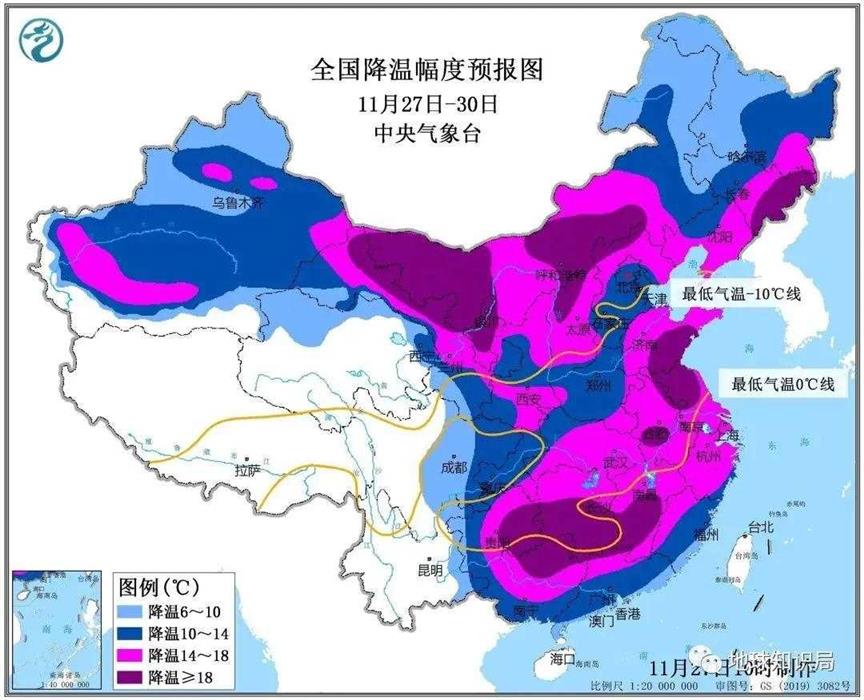 入冬以来最强寒潮即将来袭。昨天下午,中央气象台升级发布寒潮橙色预警:11月27日至30日,寒潮天气将自西向东给我国大部地区带来剧烈降温、大风、沙尘和大范围雨雪天气。