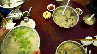 羊肚脆嫩、羊肠油润,羊汤里的料吃完后,汤底还能用来涮火锅,一把清新爽口的豌豆尖是其最佳拍档。