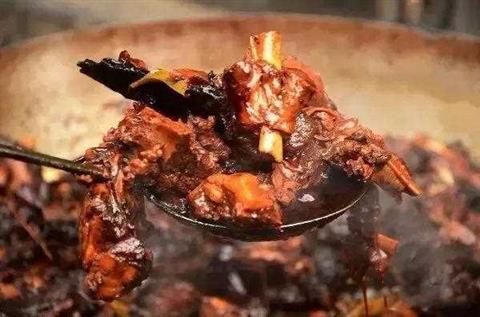 在湖北,黑山羊独领风骚,被养得又肥又壮,肉质极其出色,质地松软,毫无腥膻之气。将羊肉与板栗、老虎姜碰撞在一起,小火慢煨下,独属于羊肉的鲜味被析出,流淌于唇齿之间。板栗和黄精的加入,带来出色的甘美与津甜。泡椒的加入,则是用辛辣引领酸爽。器具上选用的是特色湖北黄冈罗田吊锅,平添一份烟火气。从氤氲的热气之间,可窥得冬季最朴实的幸福。