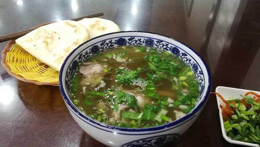 还有陕西水盆羊肉,它用的是清汤,分量极大,边上会搭配一块月牙饼或者牛舌饼。老西安人会将羊汤喝掉大半,掰开饼子夹上羊肉,淋一勺油泼辣子,油香混着羊肉香,别提多带劲儿了!
