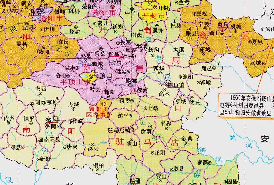 与此同时,在近现代历史上,河南各地先后遭受了旱灾、黄河改道等灾害,再加上部分地区的土匪肆虐,百姓们的日子很苦。一转眼到了建国初期,随着大规模战争的基本结束,我国进入了战后重建、发展经济、恢复生产的新时期。在河南省内,出于建设的需要,组建了一系列的专区和地级市,例如陕州专区、潢川专区、淮阳专区等等。