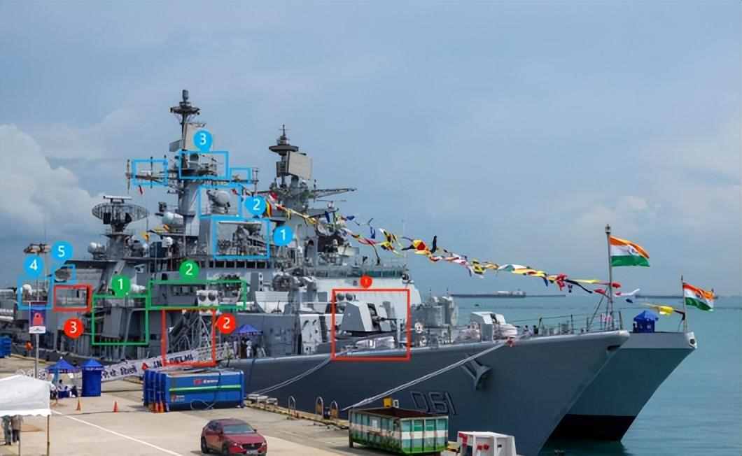 目前,印度的3艘德里级驱逐舰,已经基本完成了现代化升级改进。拆除了原AK-100型单管炮,换成了奥托·梅莱拉76毫米主炮。其次,8枚布拉莫斯反舰导弹,替换了原来的16枚天王星反舰导弹。同时,舰艇的航电系统进行了升级换代。请注意,由于印度没有国产垂发系统,经过改进之后的德里级驱逐舰,还是前后两座SAN12防空发射架。