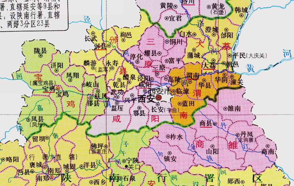 那么,咸阳市14个区县的区划框架,到底是如何一步步形成的呢?我国行省制度起源于元朝,历经元明清三朝几百年时间的调整和完善,逐步形成了内陆各省的基本框架格局。由于实际需要,明朝建立以后,曾经撤销了甘肃省,甘肃各地并入了陕西省管理。因此,在明朝统治时期,陕西省包括了当代的陕西、宁夏、甘肃等地。