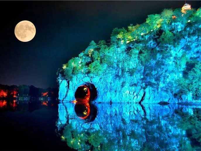 ——在广西桂林的象鼻山,白天会被它奇美的景色所吸引,感叹于大自然的鬼斧神工;到了晚上,则会被那波光粼粼的湖面上倒映着的月光所吸引,还有与月亮相呼应的双塔,简直是人间圣地。