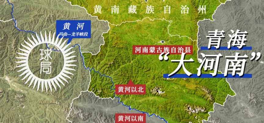 河南县和黄南州的名称来源也是“黄河之南”,但这个黄河是有范围的,指的是龙羊峡—大河家段的黄河。河南县和黄南州的辖域,均位于此段黄河之南,但由于黄河在玛曲—龙羊峡段拐了个弯,因此形成了一个“大河套”,而河南县的西南角正好跨过了这个“大河套”。