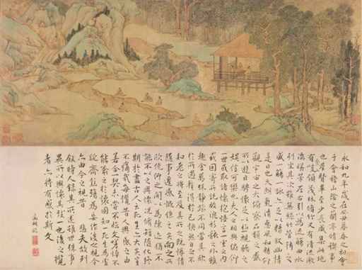 文徵明(明)《兰亭修禊图卷》,系文徵明根据王羲之