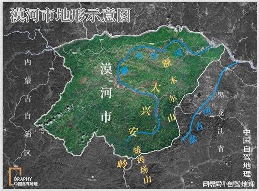 从地形图上看,黑龙江整体形似天鹅,西面是大兴安岭,东面是完达山、长白山,北面则为黑龙江、小兴安岭,南面为东北平原,地势三面环山,形同钱包。