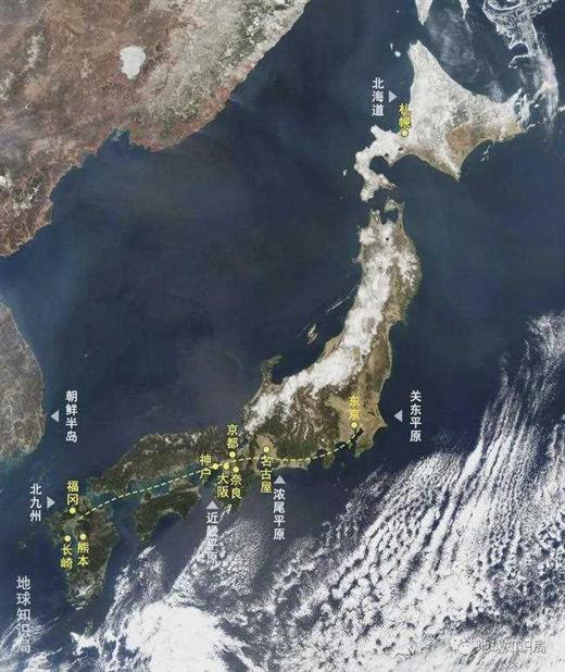 日本的绝大部分人口、经济活动都在东南海岸这一线▼