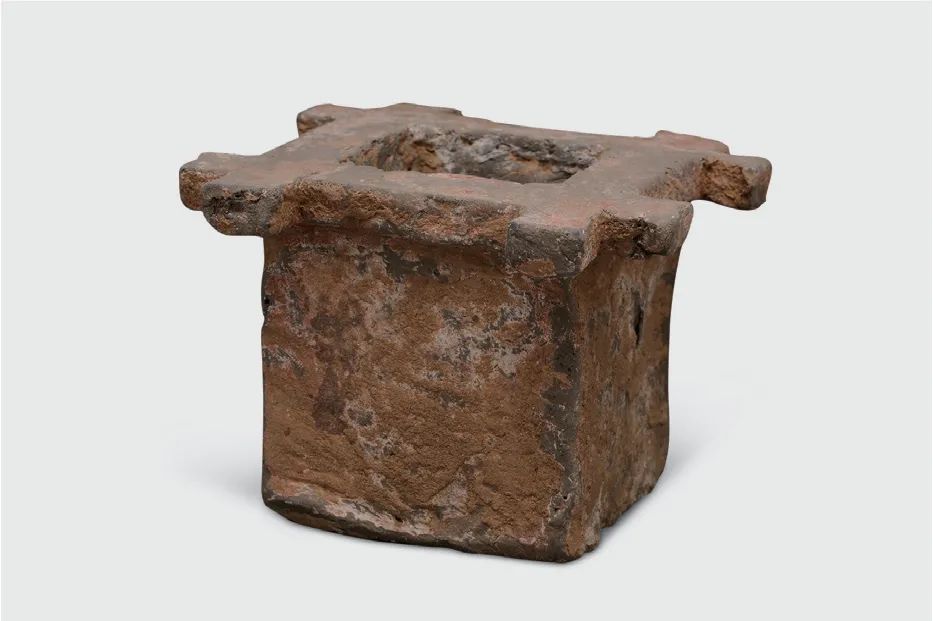 陶井 1件。标本M2 : 60,表面粗涩,空心。井呈方柱体,上口方大,下口较小,井筒为方筒形,顶面有凸出的“井”字形架。通体原涂白彩,多已脱落。通高6.7、井架长9.4、上口径4.2、下口径3.8、井筒边长5.8厘米(图四五,4;图五〇)。