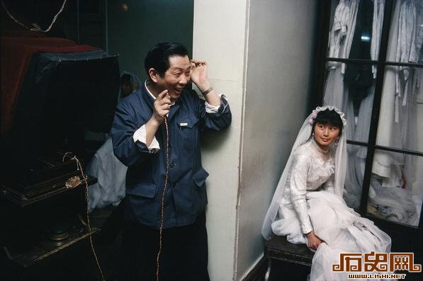 图为摄影师新娘调整拍照姿势