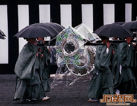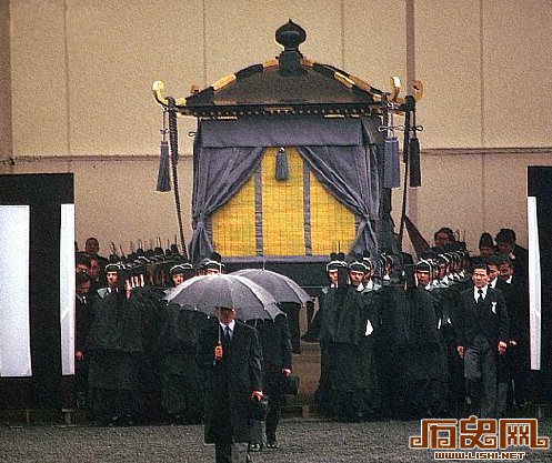 1989年1月7日,日本昭和天皇裕仁薨,同年2月24日在新宿御苑进行葬礼,后葬于东京都内的武藏野皇陵,图中裕仁的灵枢为历代天皇使用的�[花�。天皇裕仁在位期间,发动了对中国的一系列侵略战争以及太平洋战争,二战日本战败后,作为日本的实际统治者,为了保证美国占领下的日本和谐稳定,麦克阿瑟没有追究裕仁的战争罪行,维护了天皇在日本民众心中神一般的地位。
