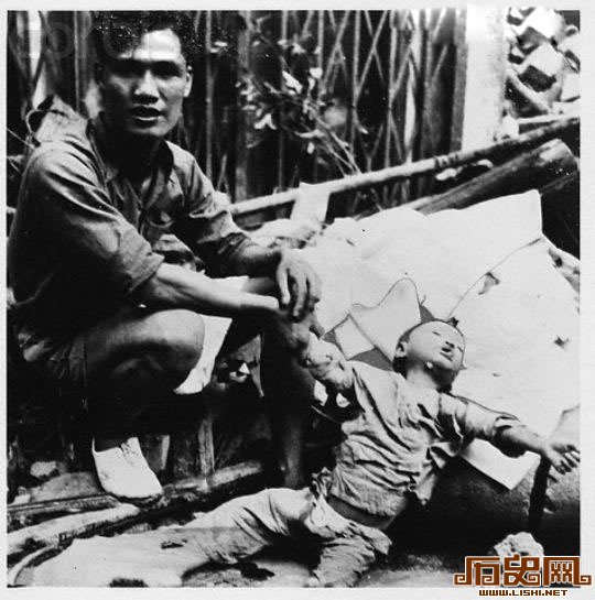 日寇暴行——无辜百姓面对劫后废墟欲哭无泪