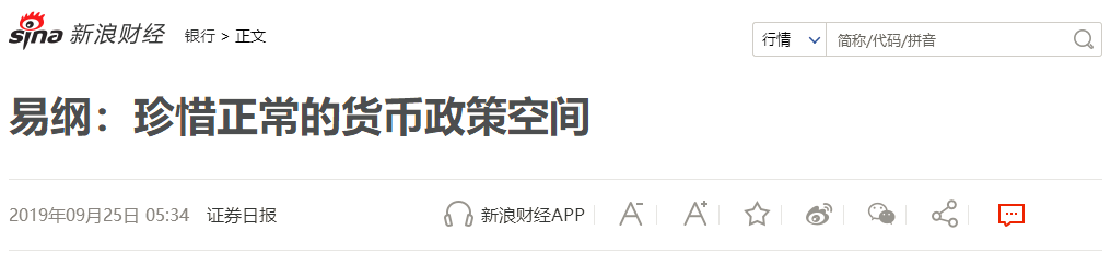2019年9月24日,易纲行长就明确指出要“珍惜正常的货币政策空间”,强调坚决不搞“大水漫灌”,留足充足的政策空间,用在刀刃上。