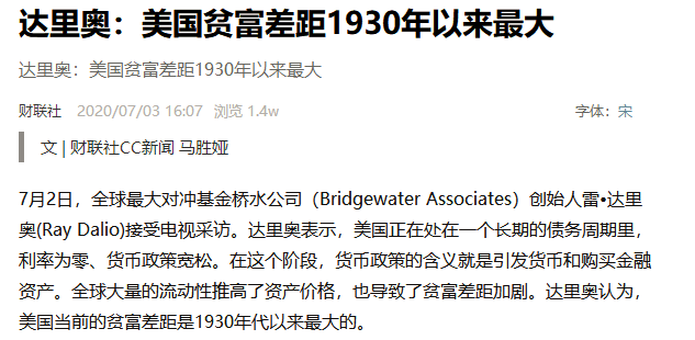 疫情过后,大放水将让财富格局完成一次再分配,贫富差距被再次远远拉大。因为大放水带来的副作用,就是“洗劫”底层的老百姓,劫贫济富。