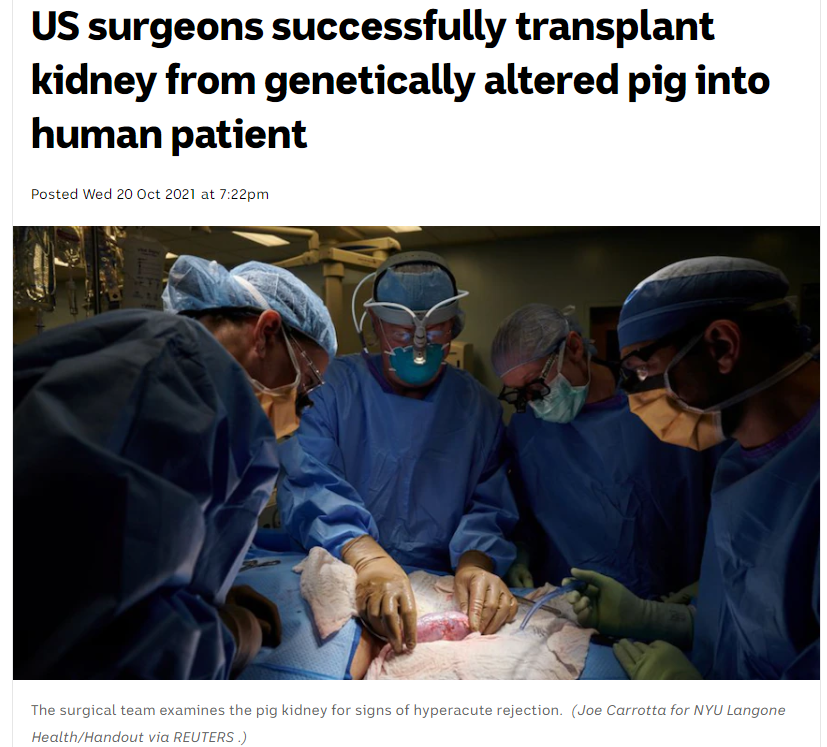 用于移植的人体器官严重短缺,促使科学家们试图弄清楚如何使用动物器官来代替,这项手术将使世界距离解决器官短缺更近一步。