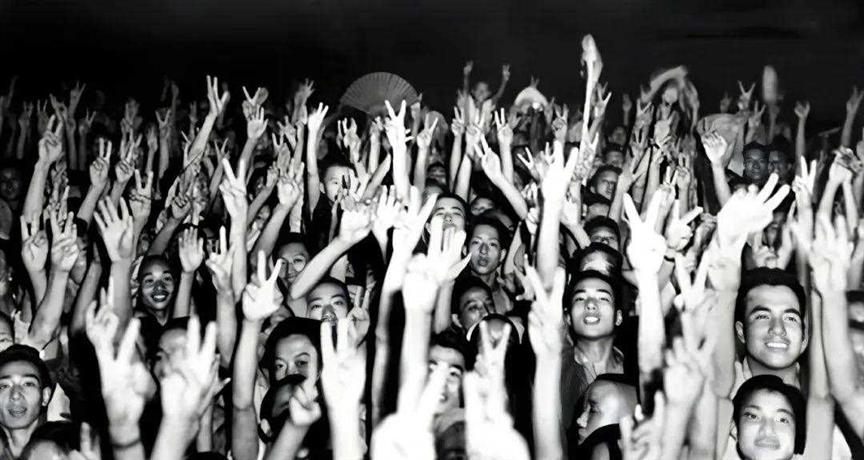 1945年8月,重庆市民听闻日本投降,摆出V字手势