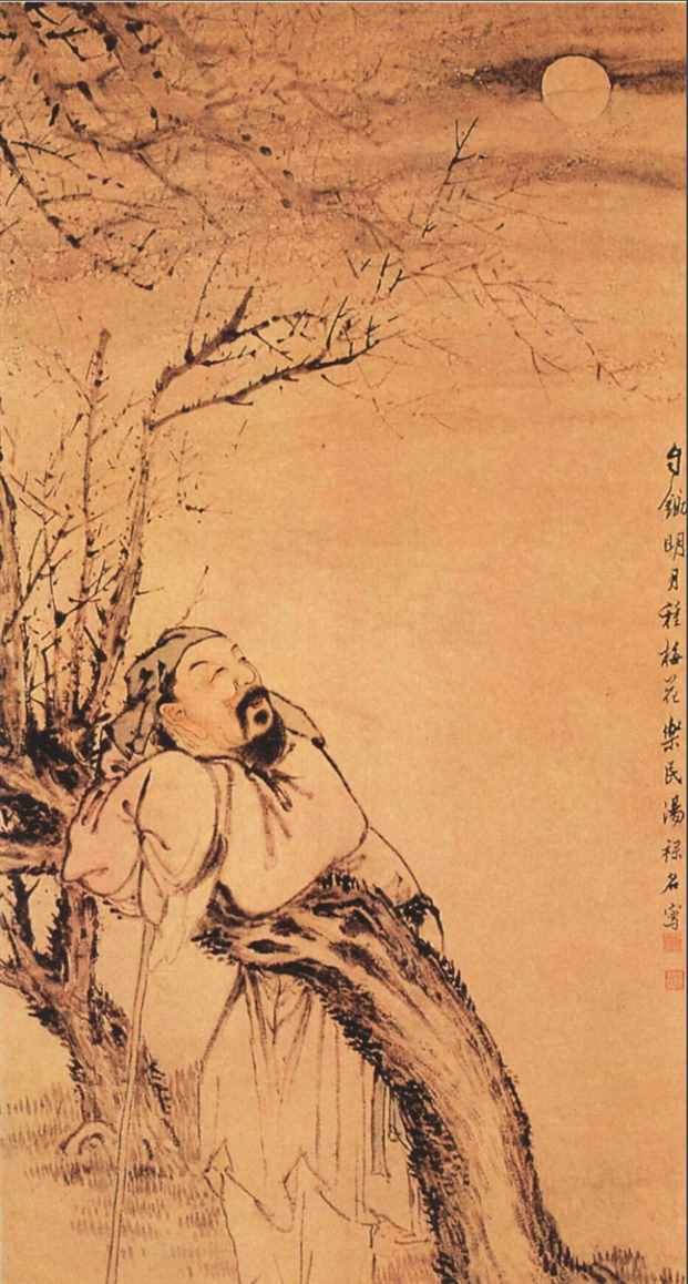 于是,明代画家谢时臣画了《谪仙玩月图》,来追忆那位伟大的“诗仙”与明月的渊源: