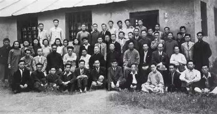 ▲1946年5月3日,西南联大中文系全体师生在教室前合影。图源:网络