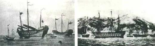 上图_ 左图为清朝的大型兵船,右图为英国的兵船