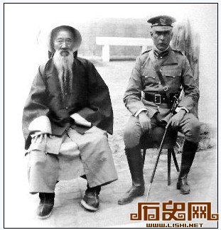 1907年,张之洞与袁世凯被慈禧召入京城,权力也被架空。图为张之洞入京前与英国军官合影。 翻拍资料照片
