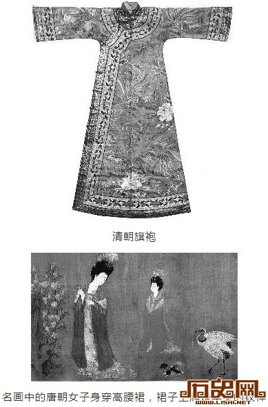 但同样是旗袍,为什么《甄�执�》中女子所穿的是那么肥肥大大、完全不显腰身的一件长袍,而民国名媛所着旗袍却是那么曲线毕露?其实,旗袍变得修身和末代皇后婉容有关。当年,溥仪冷落婉容,加上又受日本人监视、限制,婉容只好做衣服打发时间。她嫌传统旗袍过于宽大,便将学过的几何原理运用到服装上,请御用裁缝李春芳按她的意思修改,上身果然更显风韵。