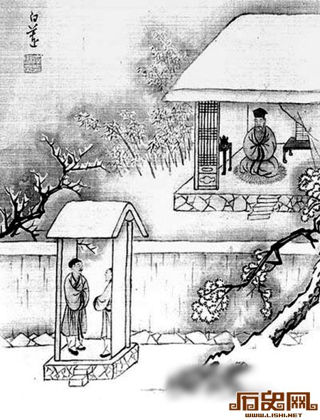 小时候喜欢看“连环画”,许多画面至今仍栩栩如生、活龙活现地留在我的记忆中。如有一位书生背着书包,不远千里来寻访老师,当来到老师家门口时,他看到老师正坐着闭目养神。因为怕打扰老师休息,这位书生便恭恭敬敬地立在门外。当时,天空正下着鹅毛大雪。待老师养足精神,打开家门,才发现有位书生很虔诚地站立在门口,而这位学生的双脚已没在了雪里。