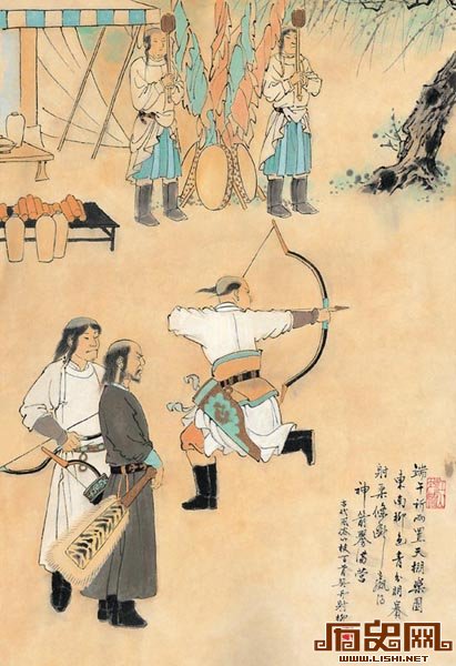 关于契丹族的起源,有一个古老传说:有男子乘白马自湟河(今西拉木伦河)而来,女子乘青牛自土河(今老哈河)而来,二者相遇,结为配偶,生八子。他们的子孙繁衍成为八个部落,逐渐发展成为以后的契丹族。
