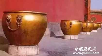 故宫中共有铁、铜、鎏金铜大缸308口,这些都是明清两代为防火而设置的储水缸。每口缸大约可储水3000多升,时刻保证储水缸满盈。
